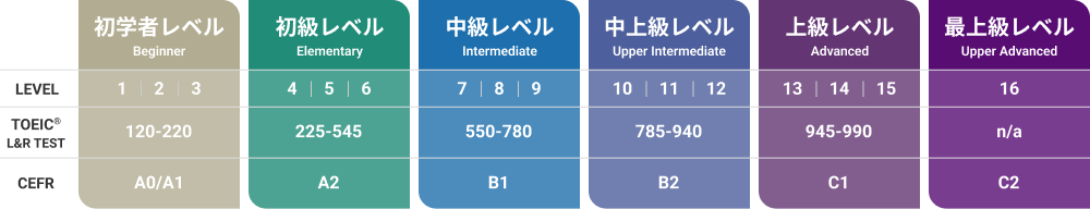 詳しくはこちらレベル1~16 レッスン数 レベル1~6:各レベル 12レッスン